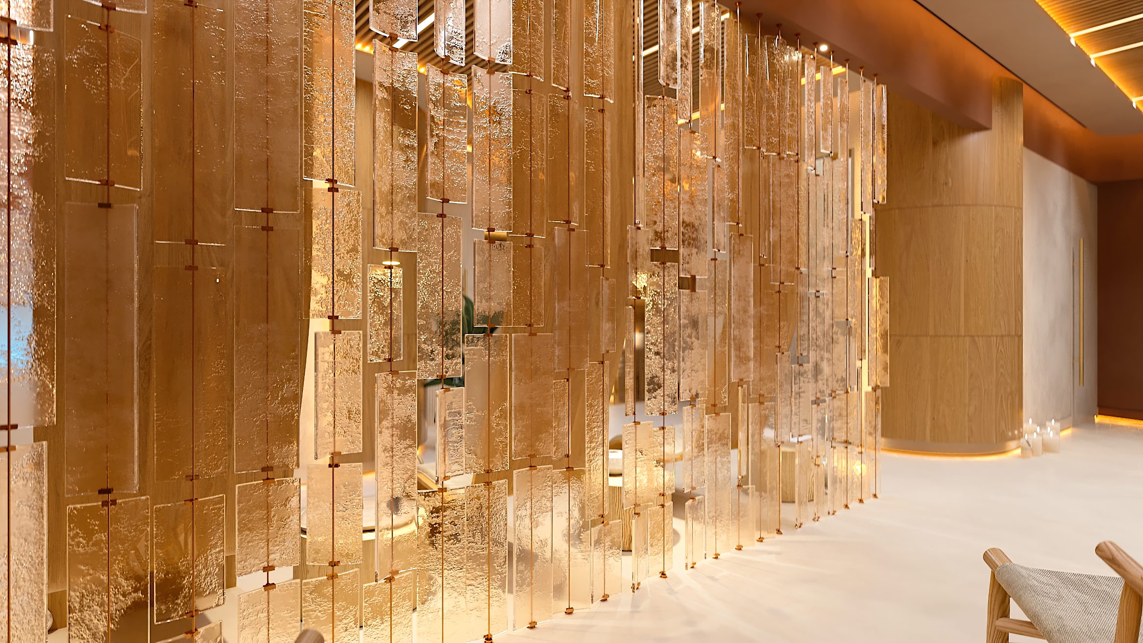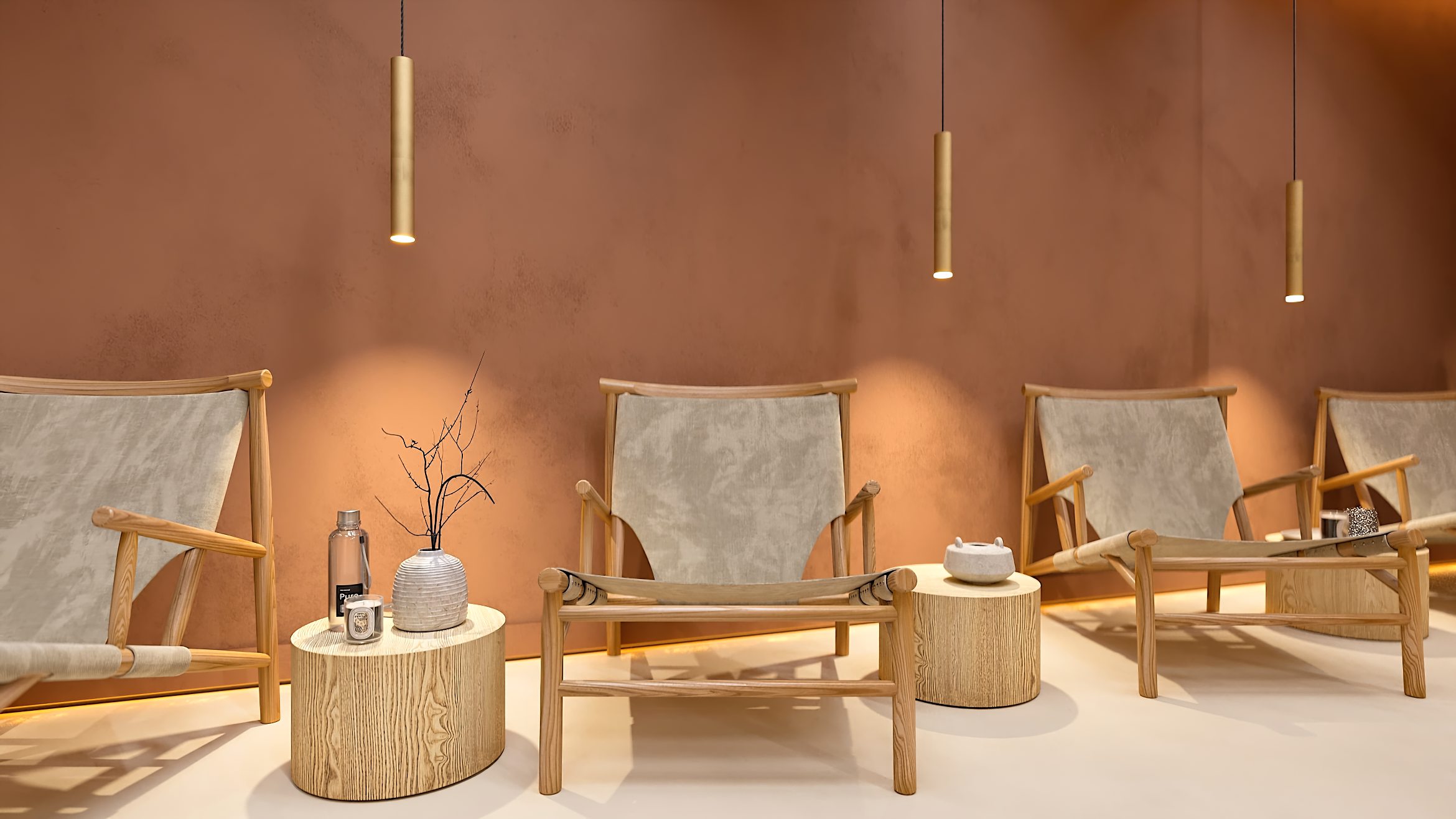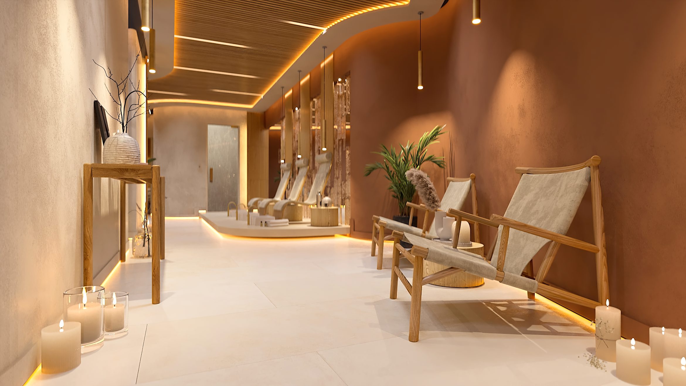 Das Gestaltungskonzept des Interieurs zielt darauf ab, dass jedes Element des Raumes zur Schaffung eines tiefen Gefühls von Ruhe und Verbundenheit mit der Natur beiträgt und den Besuch des SPA-Zentrums zu einem besonderen Ritual der Regeneration und inneren Harmonie macht.